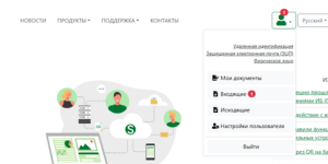 После прохождения аутентификации иконка с силуэтом окрасится в зеленый цвет. Кликните на нее чтобы открыть настройки пользователя и списки входящих/исходящих документов.