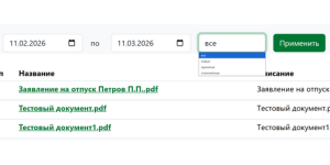 Фильтр вверху списка позволяет отобразить входящие документы за определенный период, а также отфильтровать их по статусам.