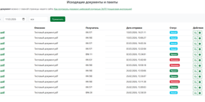 В разделе исходящих документов отображаются все документы, подписанные пользователем с использованием функции входящих/исходящих. Исходящие документы, как и входящие имеют статусы «новый», «принятый», «отклоненный». Пользователь может отправить комментарий к каждому отправленному документу.
